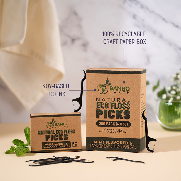 BAMBOEARTH’s eco-friendly dental floss picks are a game-changer for your oral health and the planet. Say goodbye to traditional plastic floss with our compostable corn straw and wheat straw handles—a solution that's as sustainable as it is effective. These picks are ultra-strong, shred-resistant, and thin, giving you a thorough clean every time, leaving your mouth refreshed and revitalized. The mint-flavored, candelilla wax-coated floss glides smoothly for a painless experience, while the compostable handle ensures zero waste. Plus, they're cruelty-free! Choose from a variety of types to find the perfect match for your eco-friendly dental routine.
