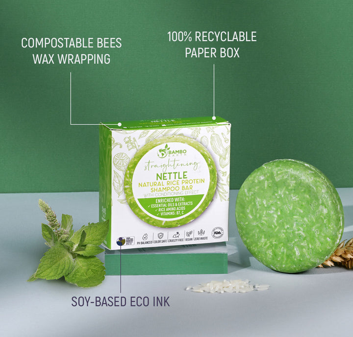 Sodium Cocoyl Isethionate, Sodium Methyl Cocoyl Taurate, Zea Mays (Corn) Starch, Sodium Cocoyl Sarcosinate, Water, Hydrogenated Olive Oil, Glycerin, Castoryl Maleate, Guar Hydroxypropyltrimonium Chloride, Butyrospermum Parkii (Shea) Butter, Fragrance, Urtica Urens (Nettle) Essential Leaf Extract, Hydrolyzed Rice Protein, Rice Amino Acids, Biotin (Vitamin B7), Ascorbic Acid (Vitamin C), Food Grade Colorant (CI 11680, CI 74160).