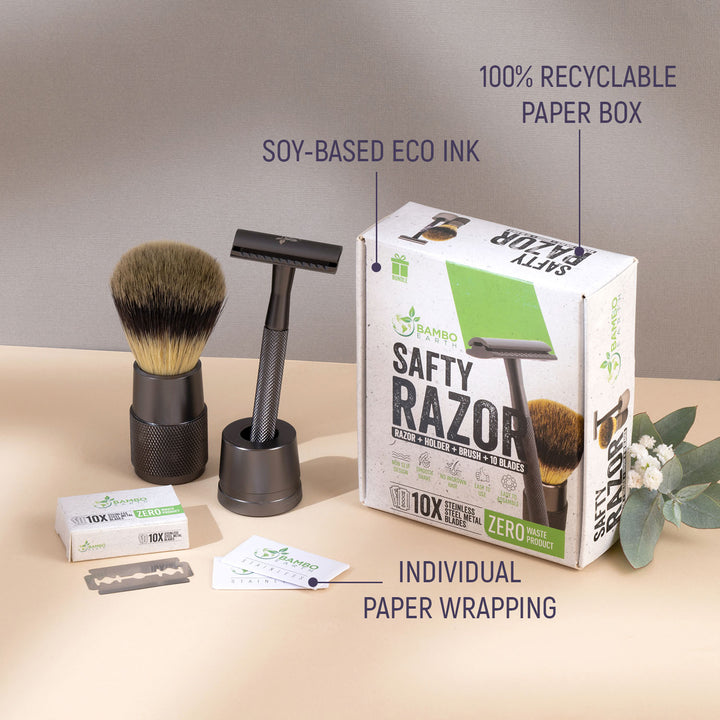 Our safety razor with a double-edge blade ensures a close, smooth shave without irritation.