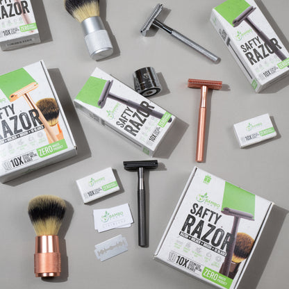 Our safety razor with a double-edge blade ensures a close, smooth shave without irritation.