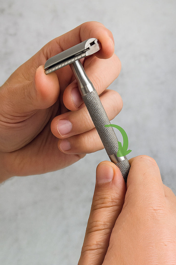 Twist the handle back on until it’s firmly tightened. Your razor is now ready for use — enjoy a clean and precise shave.